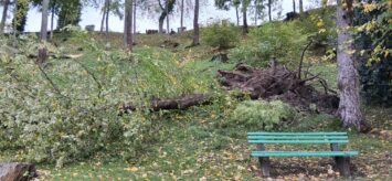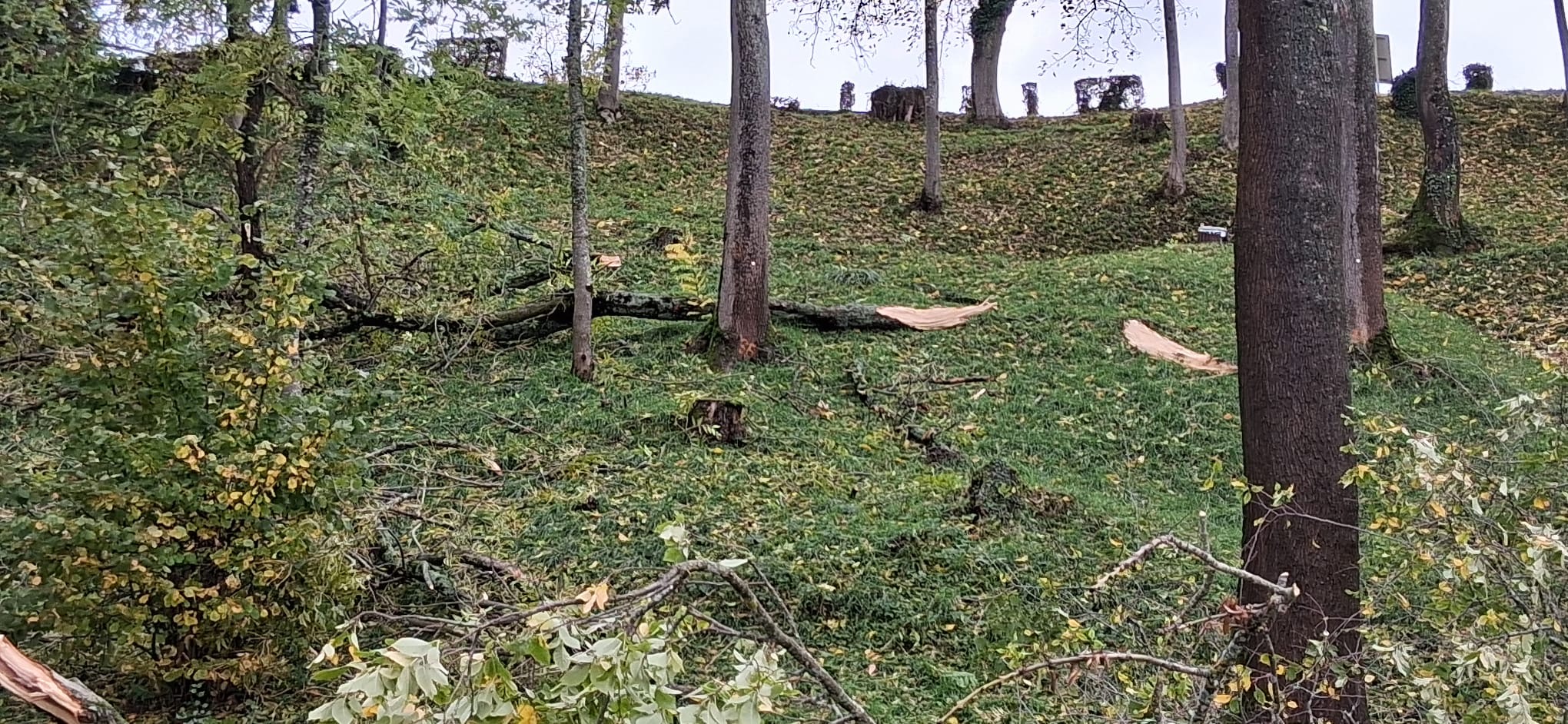 Certains arbres se sont cassés, d’autres déracinés et de nombreuses branches sont au sol.
