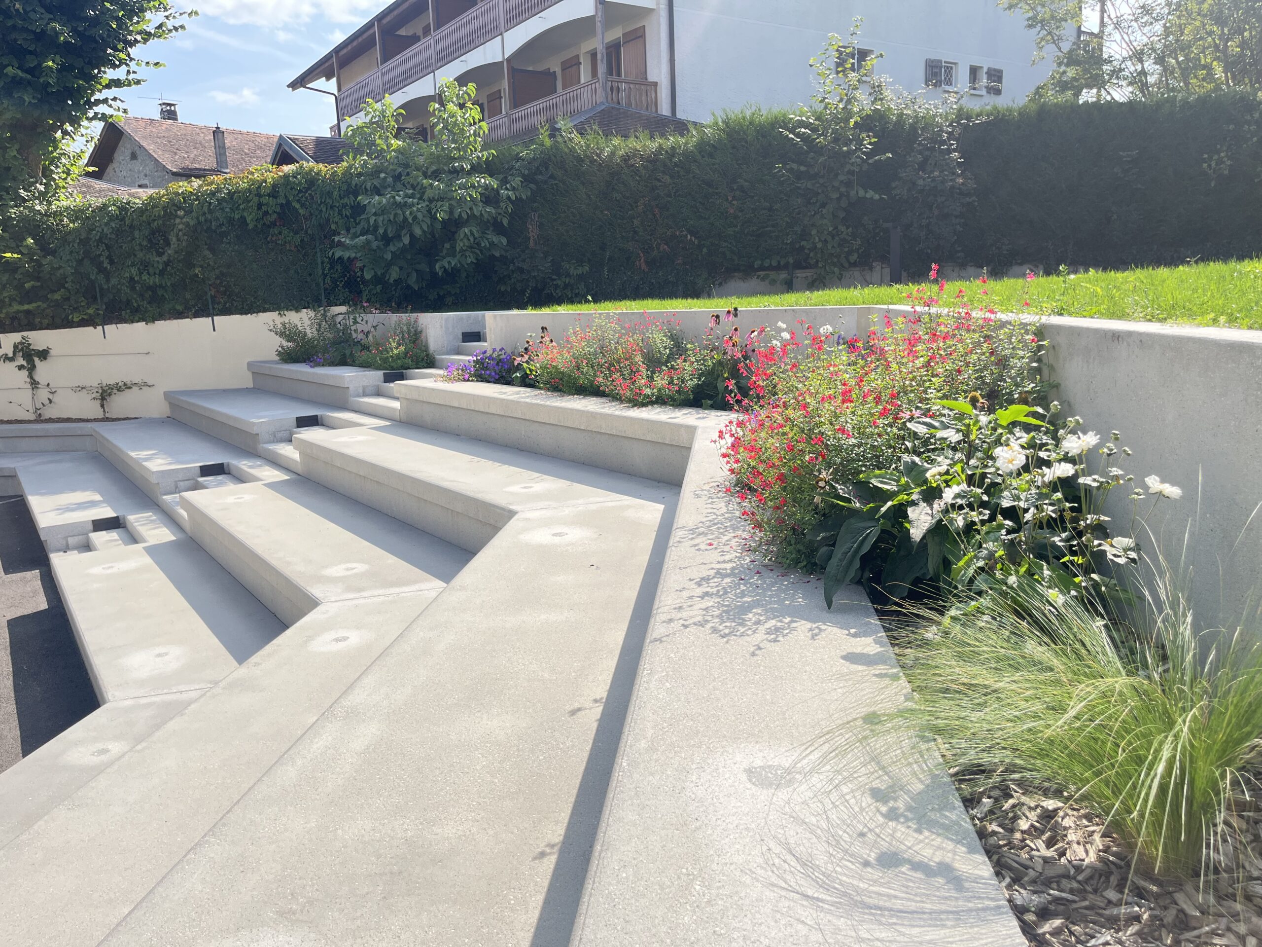 Dans le prolongement des travaux engagés précédemment place de la mairie, la végétalisation a été réalisée ce Printemps 2025 ; quatre arbres et l’intégration de massifs de plantes vivaces en partenariat avec le maître d’œuvre ADP Dubois.